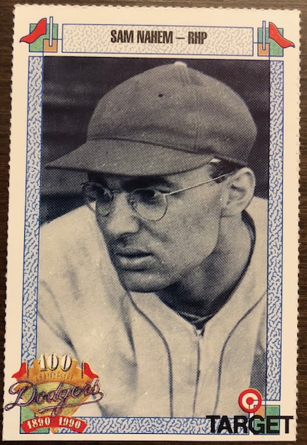 10. Sam Nahem never had a pro baseball card. However, the Dodgers with Target Corporation but out a 100 Anniversary Dodgers team and Nahem made it. The card is flimsy and rare but it exists.