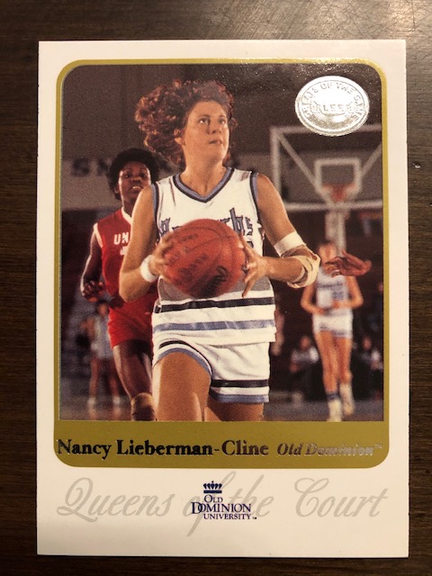 8. Nancy Lieberman (Cline) has a handful of cards including her USA Olympic card an WNBA. But this awesome Queen of the Court Old Dominion card is the coolest and most unique.