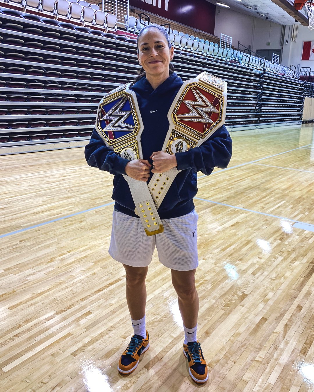 Two Belts Sue Bird Posted by jfine1126 on December 10, 2020 WWE tradition is to send champions official WWE Championship belts. Here is Sue Bird sporting both the RAW and Smackdown belts representing the Seattle Storm! Share this: Click to share on X (Opens in new window) X Click to share on Facebook (Opens in new window) Facebook Like Loading... Related