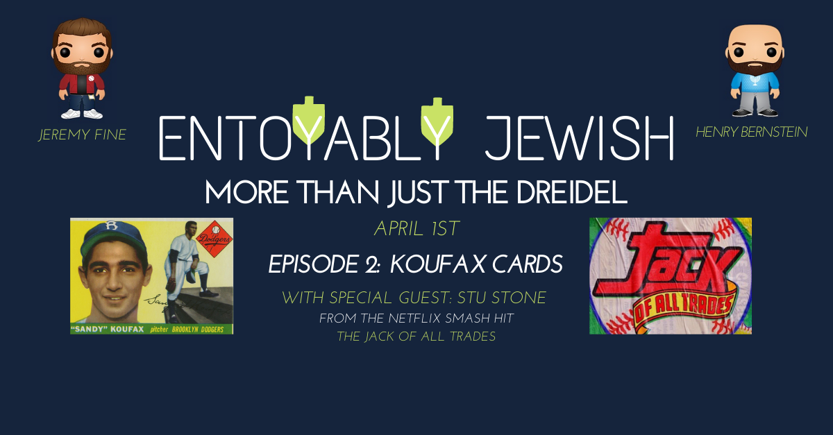 EnTOYably Jewish is a new show that looks into Jewish toys, collectibles, cards, comics, and more! The Great Rabbino (Jeremy Fine) and his buddy Henry Bernstein are the hosts. Shows and information can be found on the Enjoyably Jewish Network on Facebook. This episodes features Stu Stone from the Jack of All Trades!